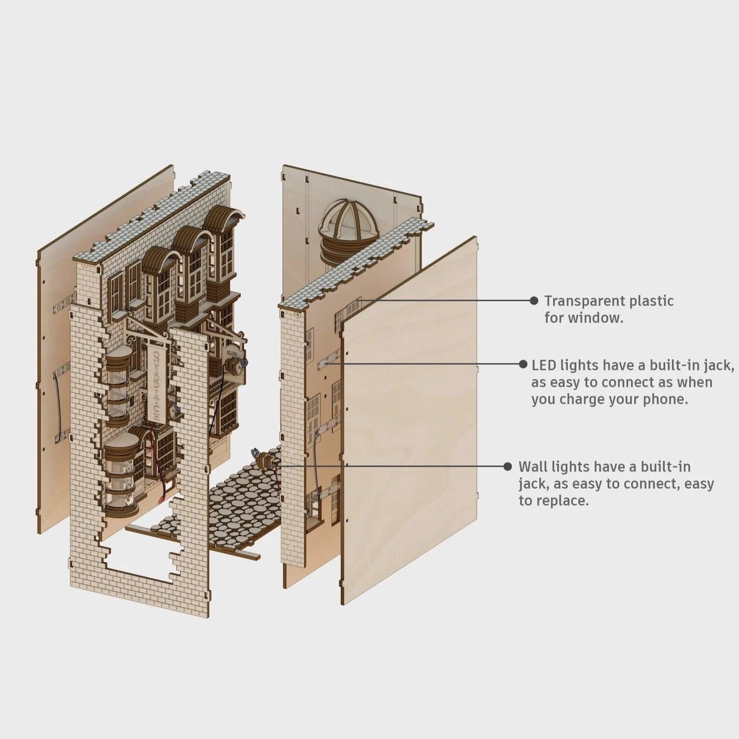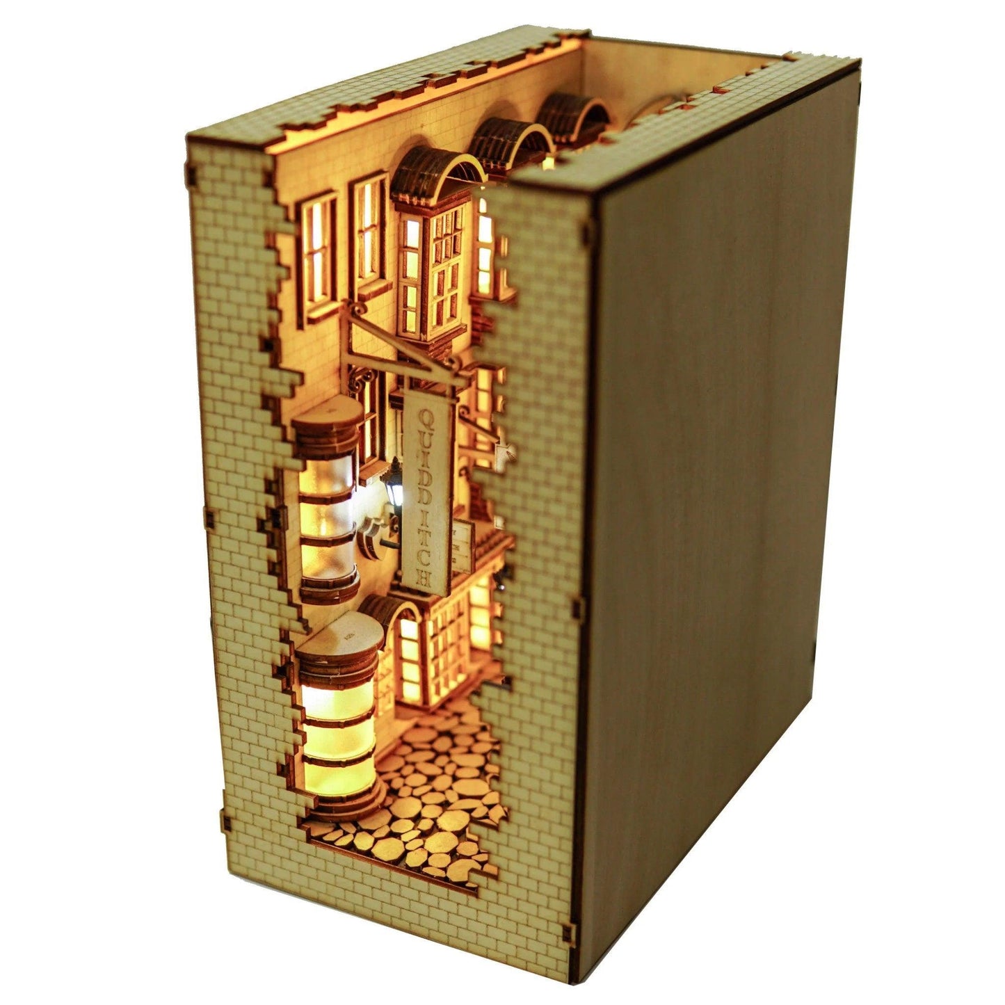 DIY Magic Alley Book Nook - DIY Book Nook Kits - Wizard Alley Book Nook Dioramas Book Shelf Insert Book Scenery with LED Model Building Kit