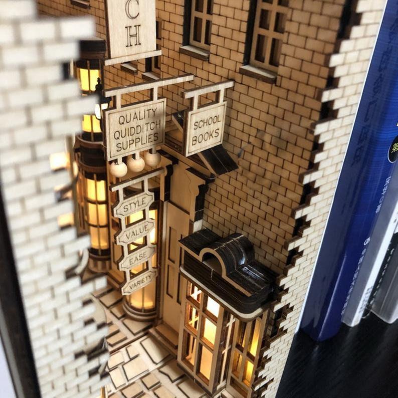 DIY Magic Alley Book Nook - DIY Book Nook Kits - Wizard Alley Book Nook Dioramas Book Shelf Insert Book Scenery with LED Model Building Kit