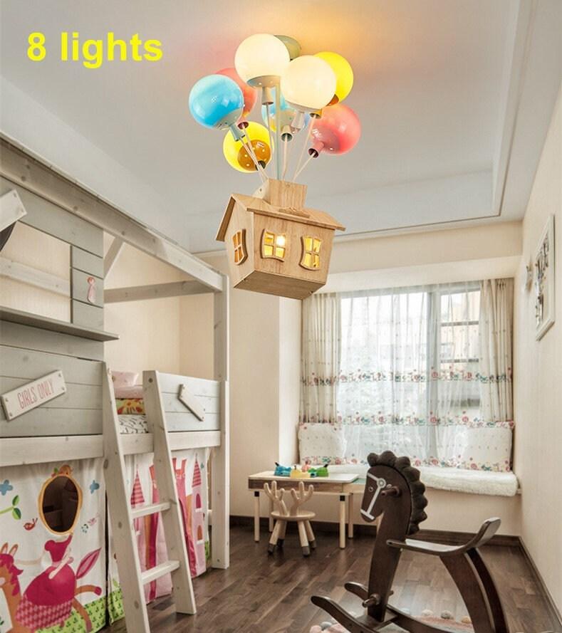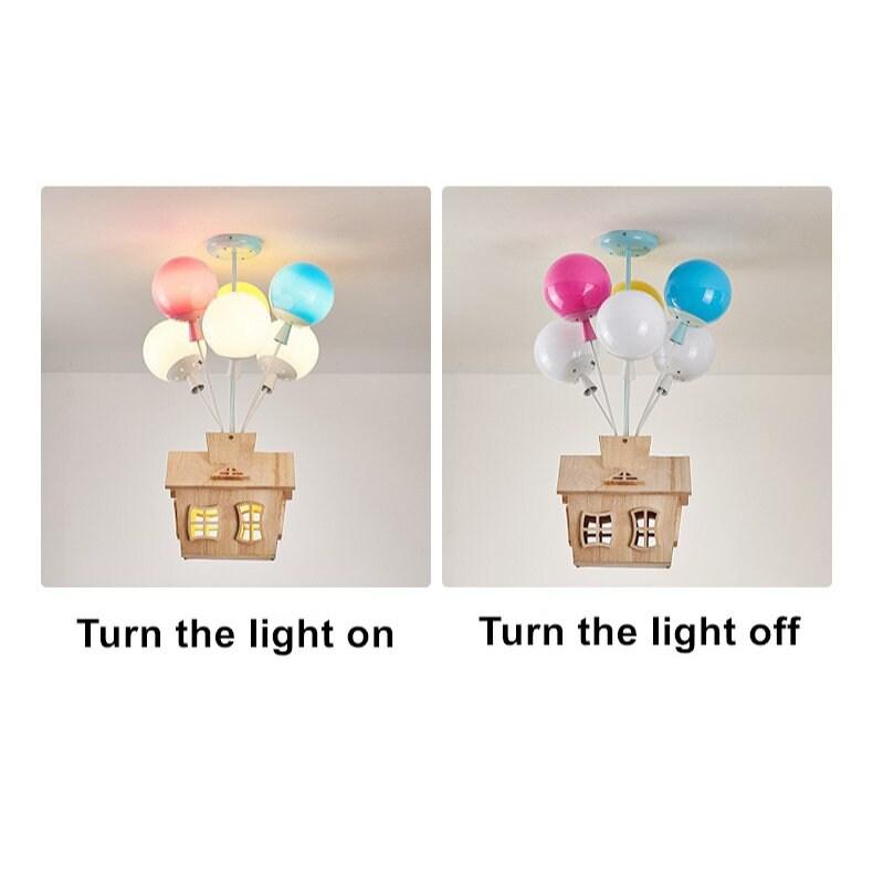 Kids Room Decor - Chandelier Pendant Ceiling Lights - Balloon Chandelier Lamp With Wooden Miniature Dollhouse - Kids Room Air Balloon House