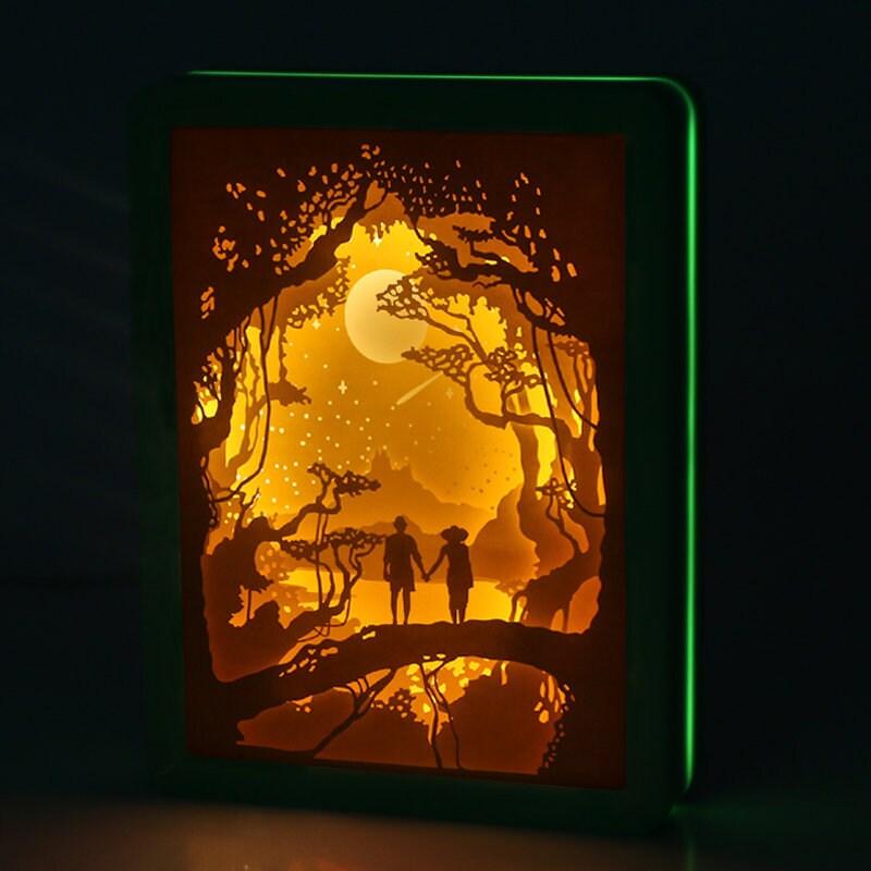 Romantic Night Shadow Box - 3D Paper Cut Light Box - Wall Hangings - Paper Cut Lamp - Laser Cut 3D Night Light With Frame, LED - Photo Frame