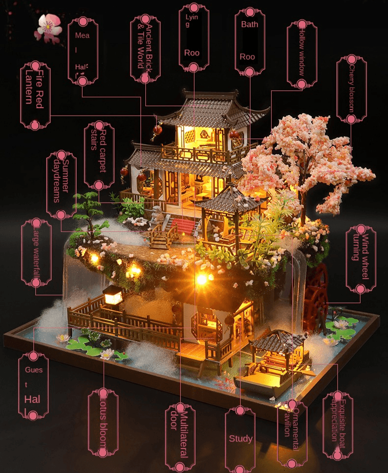 This DIY dollhouse kit makes a great craft project and gift for both children and collectors! This dollhouse features a very detailed interior design with lights that lighten this dollhouse in the dark. The pictures show the finished projects. What you will receive is a package of materials you need to assemble them into this dream house! Just follow the step-by-step illustrated instructions and have fun !