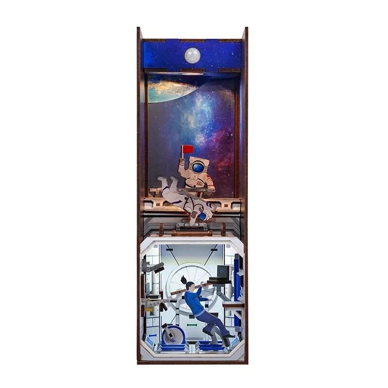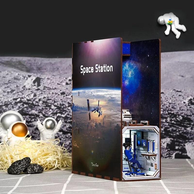 Space Station Book Nook - DIY Book Nook Kits Book Doll House Book Shelf Insert Book Scenery Bookends Bookcase with Light Model Building Kit