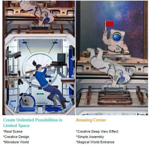 This is NOT a finished product. DIY book house is a handmade miniature furniture toy. This one with the theme of book scenery Space Station is very popular as a new year gift. There are many mini jewels in the baby room. We need more patience. I believe that when you finish this work, you will feel a great sense of accomplishment. He will bring a lot of surprises. Children's gifts, Valentine's Day gifts or new year's gifts are good choices! The product contains an English manual, the main material is wood, which is very close to our real house!