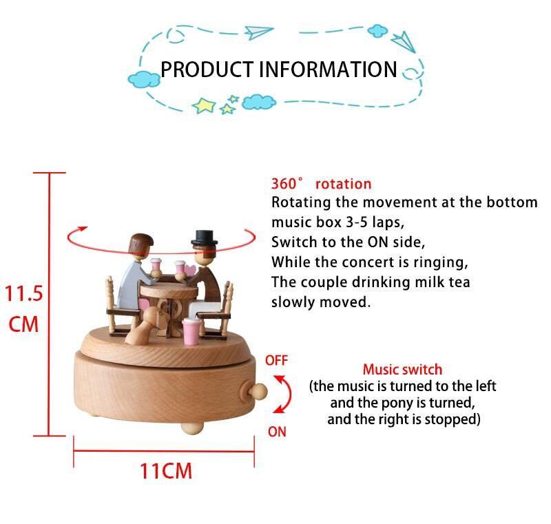 This rustic, cute tiny music box is made of Beech Wood, fits right on the table. It comes with a sturdy white box, perfect gift for pop-jazz classics music-lovers.