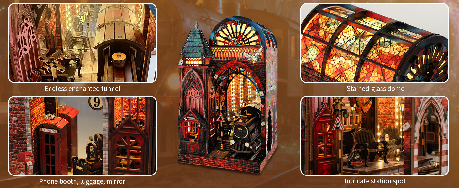 DIY Book Nook Kit Magic Platform Bookshelf Insert Midnight Departure Magic Station Miniature Diorama Scenery