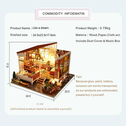 DIY Dollhouse Kit Countryside Apartment Cozy Cottage Miniature Dollhouse Kit