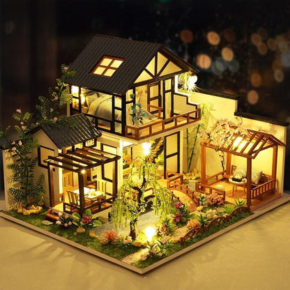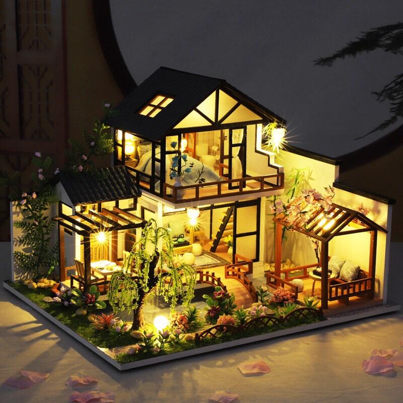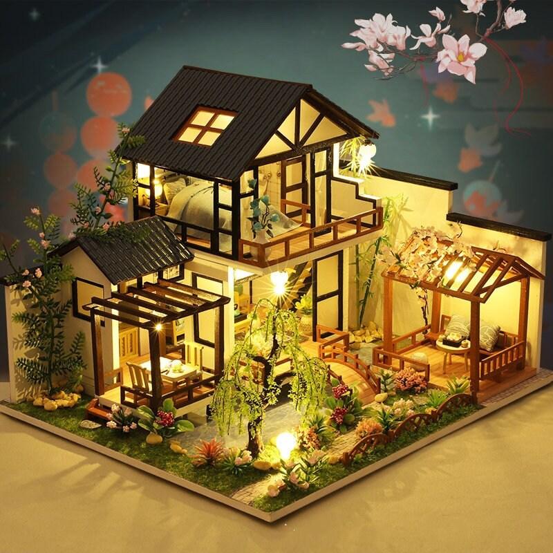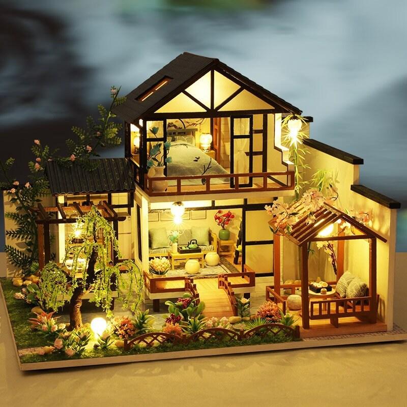 Japanese Style DIY Dollhouse Kit Miniature House With Water Garden Japanese Villa Style Miniature Dollhouse Kit