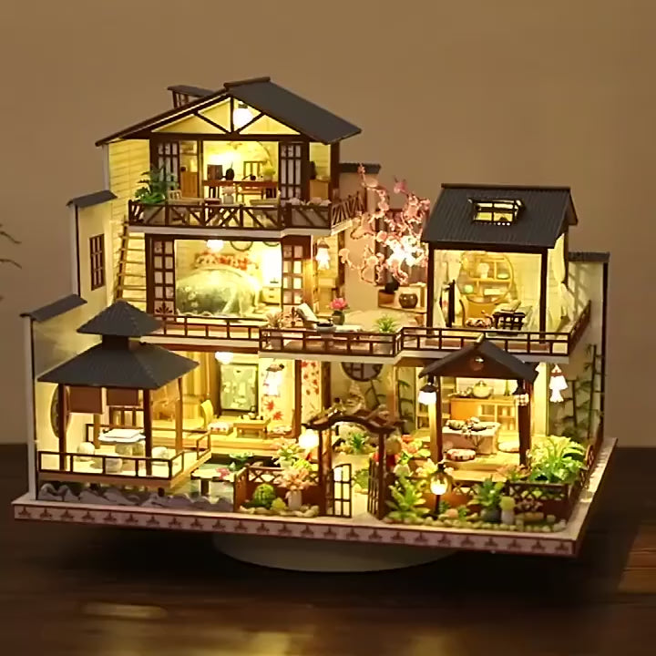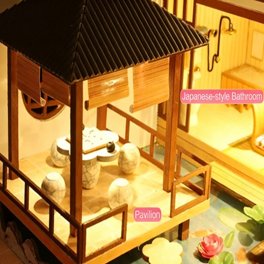 DIY Dollhouse Kit Zen Miniature House 3D Wooden Puzzles Ancient Japanese Style Doll House Craft Kits