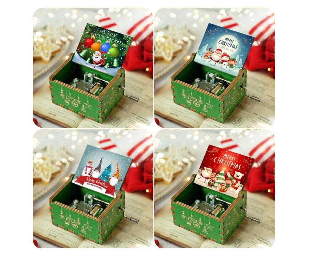 Christmas Music Box - Hand Cranked Wooden Music Box - Christmas Gifts - Holiday Gifts - Birthday Gifts - New Year Holiday Presents - Wooden