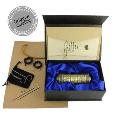 When you open the security code, you will be able to find two rings, which will be a pleasant surprise. When you put a new password, you will only have to turn the screws, and the sequence of letters to reissue the 6-ring password. The miniature cryptex of the Da Vinci Code is the ideal gift for Christmas or Halloween for your friends, children or parents. Also, it is the best Valentine's gift.