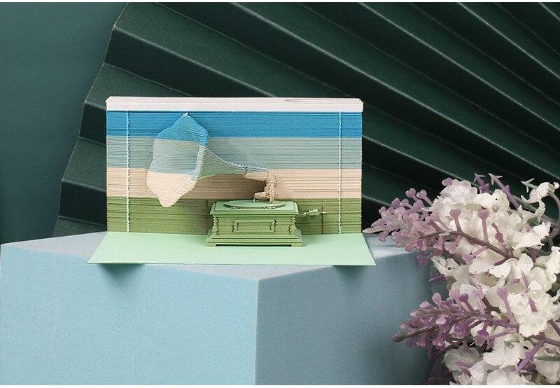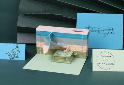 Phonograph 3D Note Pad Calendar - Phonograph Miniature - Gramophone Model - Creative Memo Pad - Omoshiroi Block - Artistic Note Pad - Unique Gifts