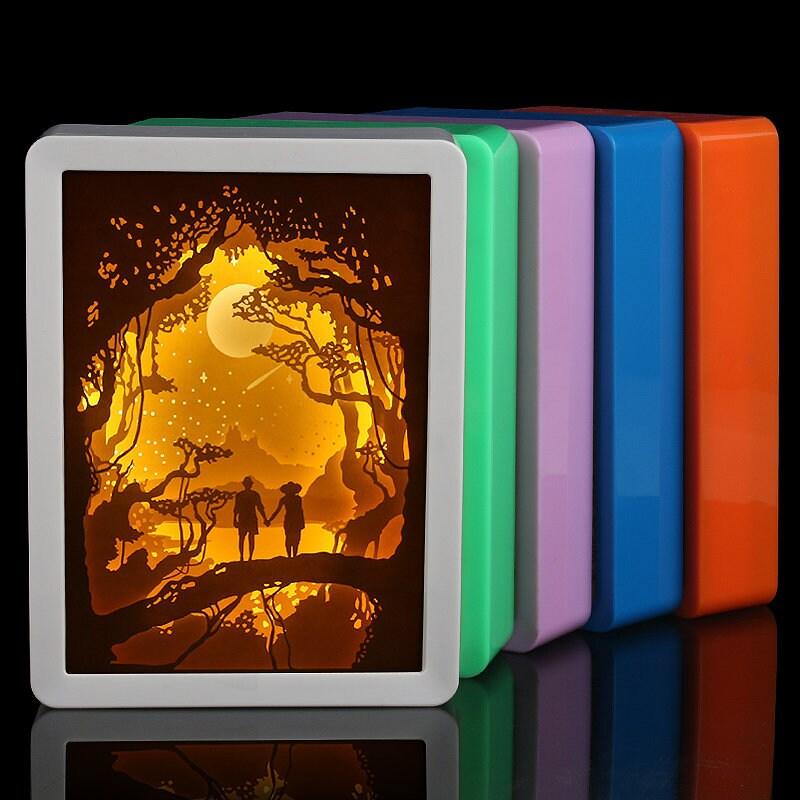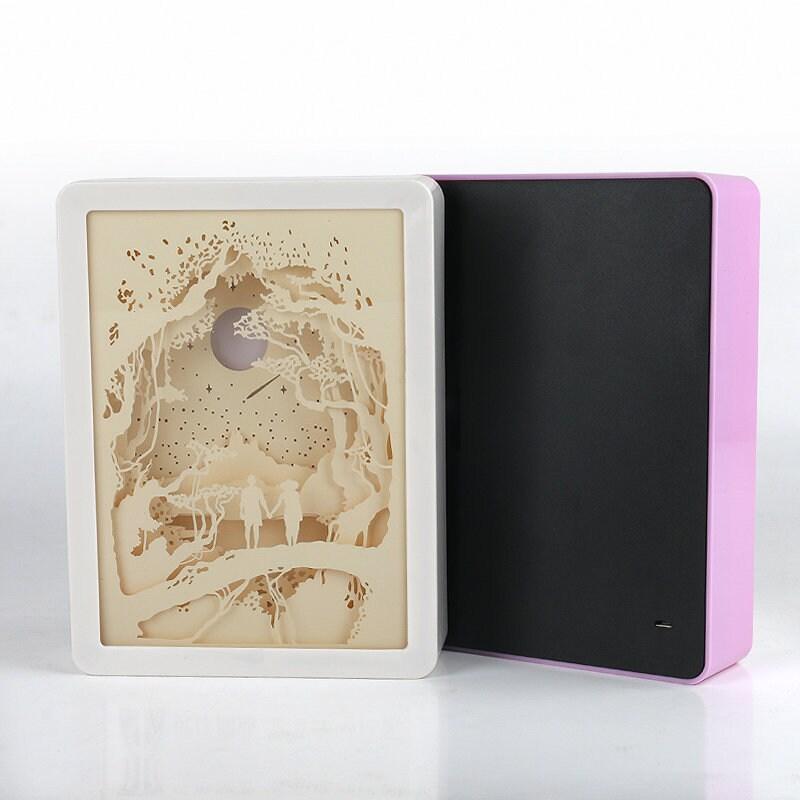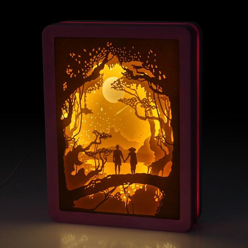 Romantic Night Shadow Box - 3D Paper Cut Light Box - Wall Hangings - Paper Cut Lamp - Laser Cut 3D Night Light With Frame, LED - Photo Frame