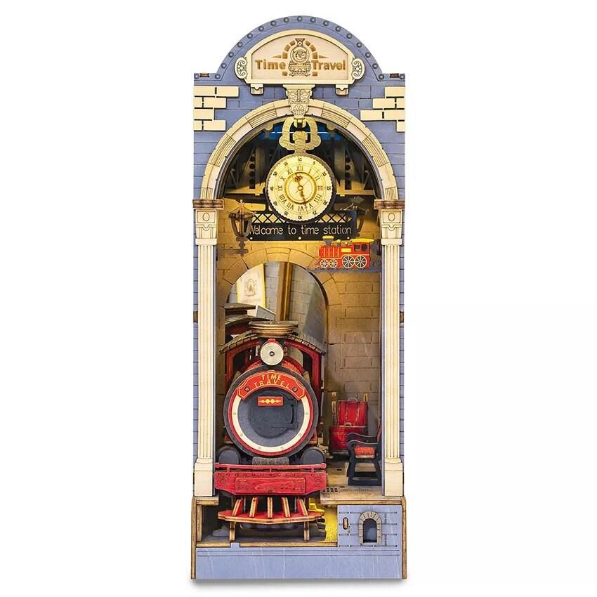 Time Travel Book Nook - DIY Book Nook Kits Book Magic Platform Book Shelf Insert Book Scenery Bookends with Light Model Building Kit