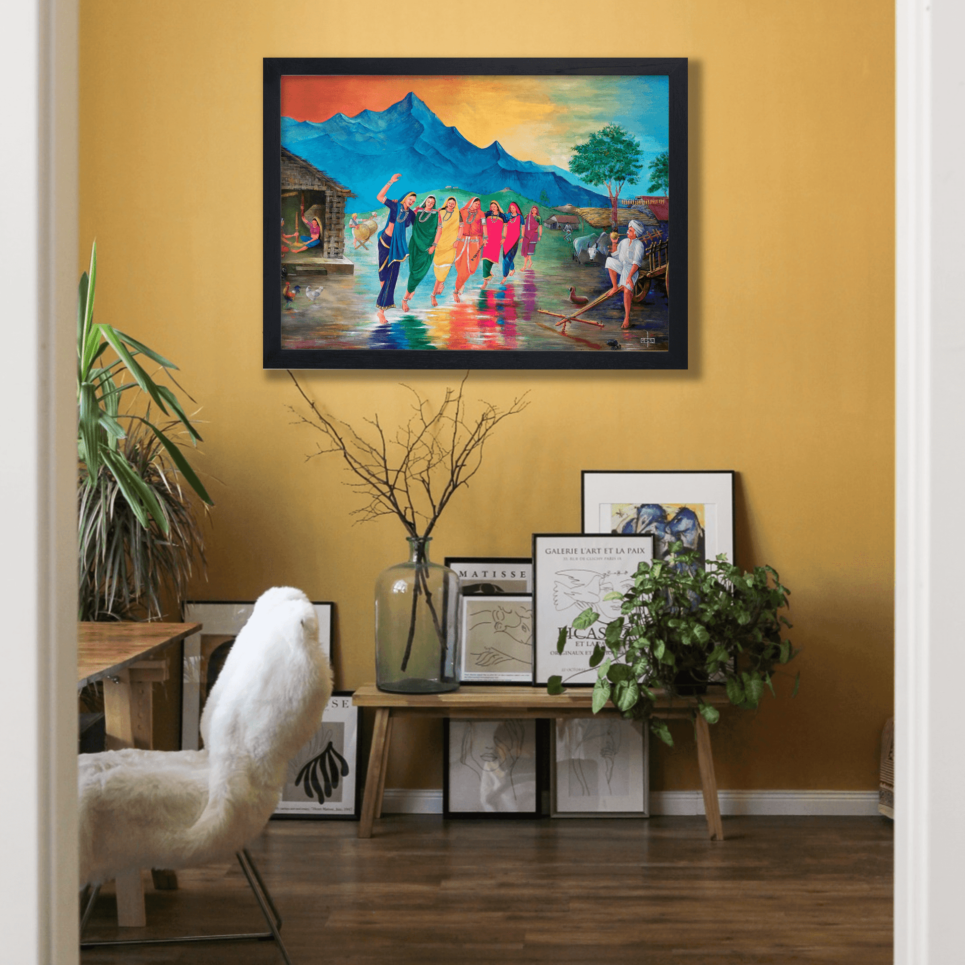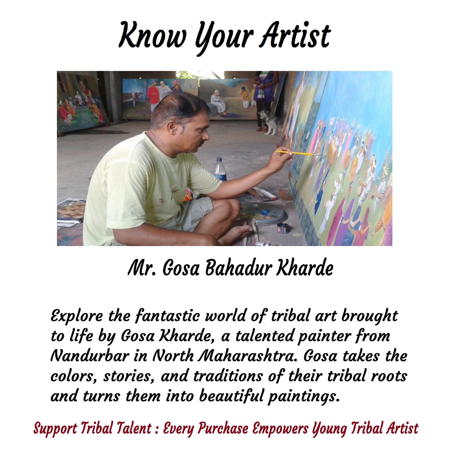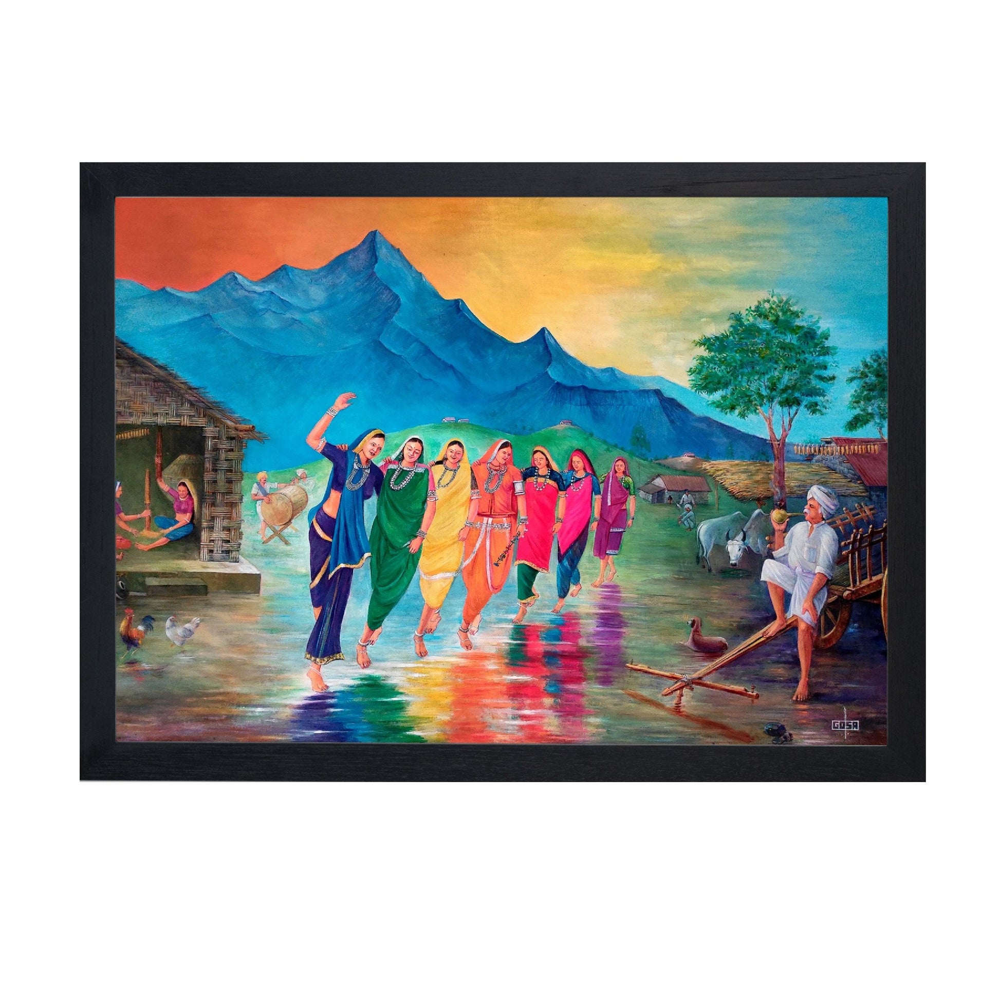 - "Rhythms Of Tradition" beautifully captures the essence of tribal life. The intricate details and striking colors transport you to a world where tradition and nature coexist harmoniously. Mr. Gosa's brushwork brings to life the lush landscapes, the deep-rooted customs, and the stories passed down through generations.