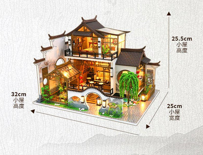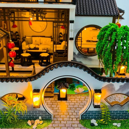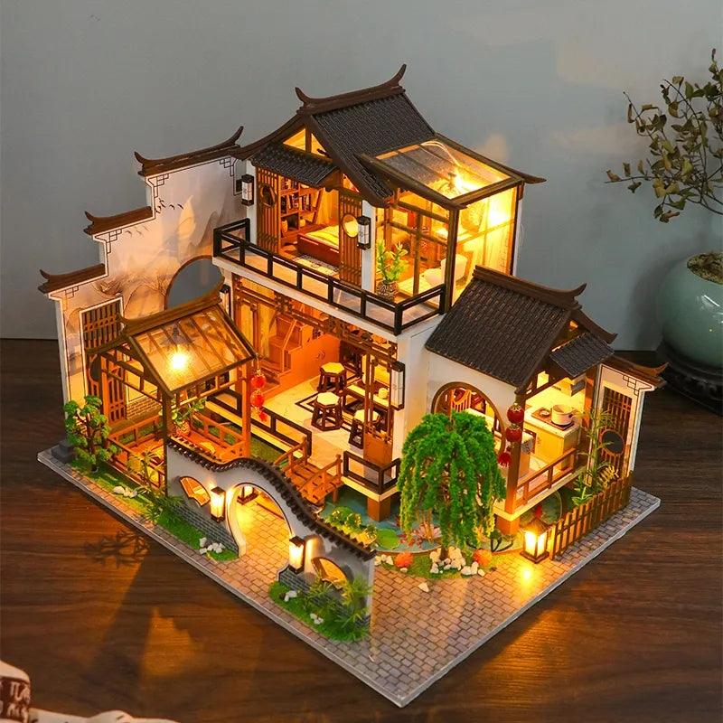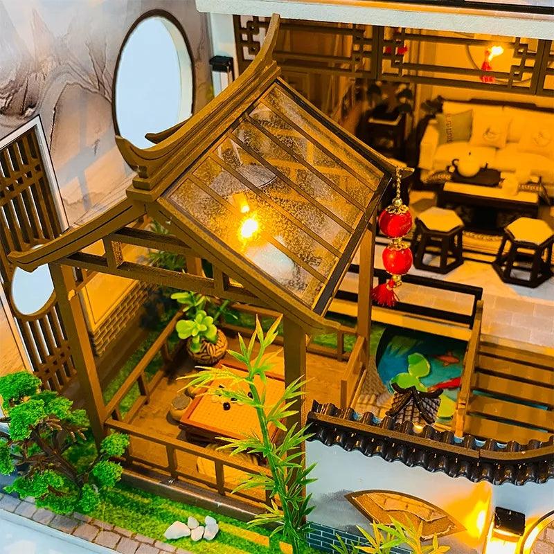 DIY Dollhouse Kit Poetic Charm Japanese Style Dollhouse With Moonlight & Lotus Pond Japanese Miniature Dollhouse Holiday Crafts