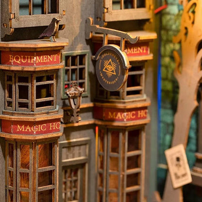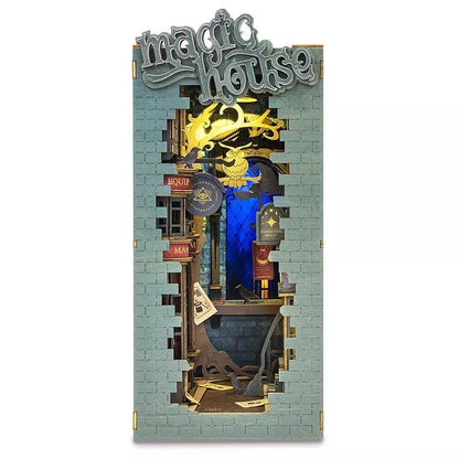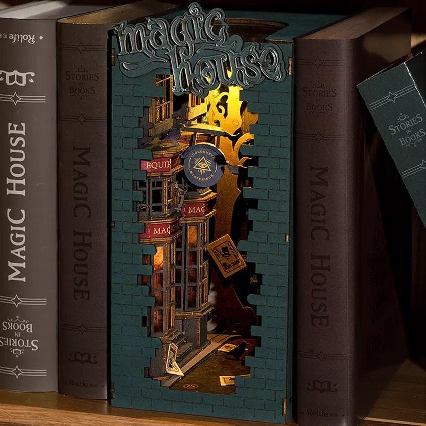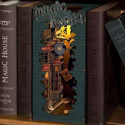 Magic House Book Nook - DIY Book Nook Kits Book Doll House Book Shelf Insert Book Scenery Bookends Bookcase with Light Model Building Kit